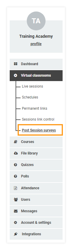 In order to create a custom survey you will have to first locate the Post-Session surveys tab.